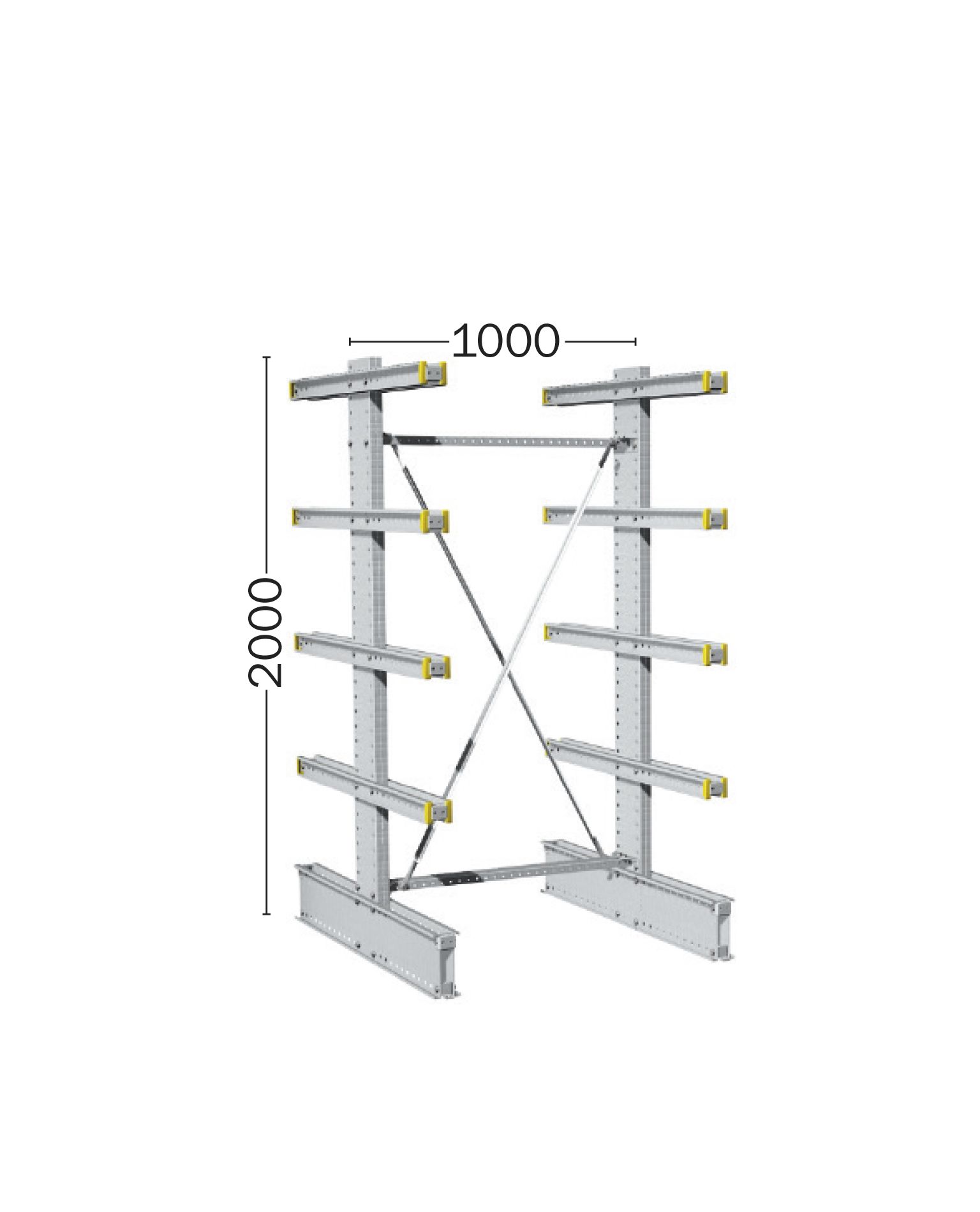 Kevyt ulokehylly GL, 2 pylväinen 2000mm, uloke 2x600 mm