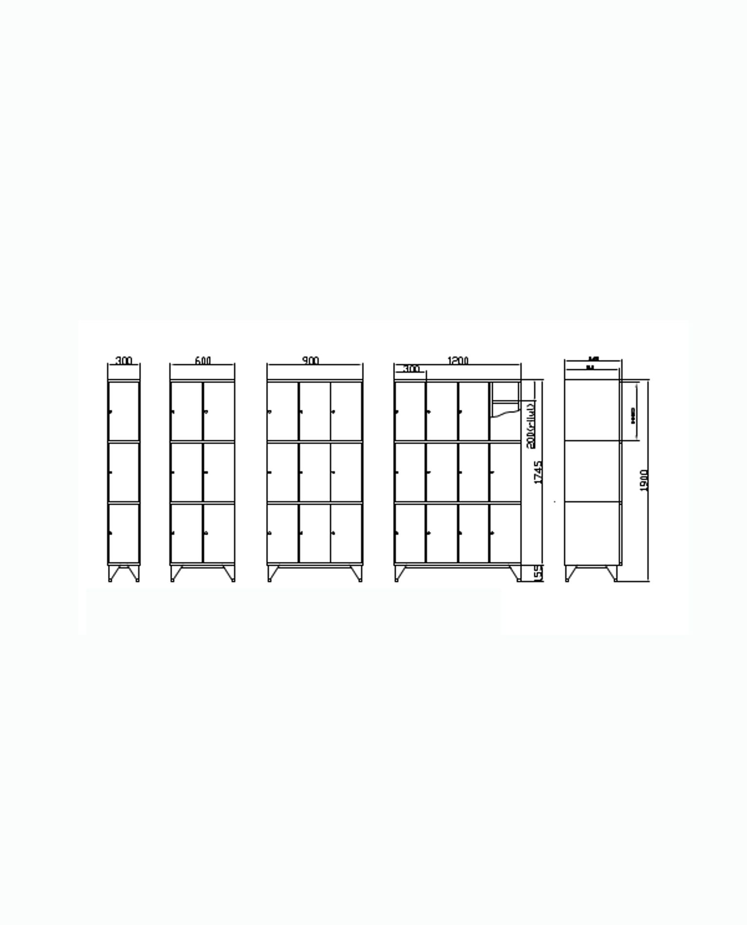 Lokerokaappi 2 x 3 lokeroa 600 x 1900 mm Solid