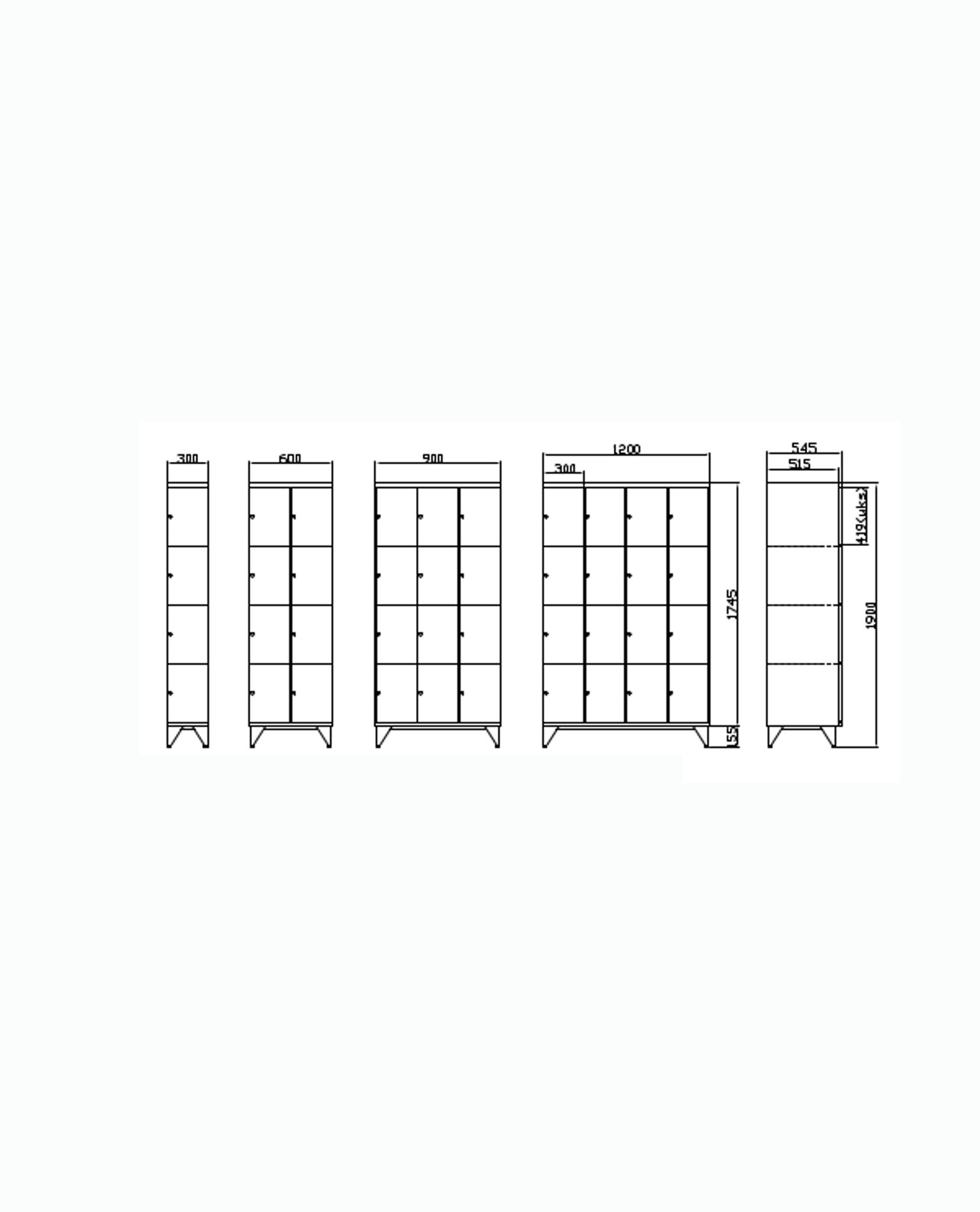Lokerokaappi 4 x 4 lokeroa 1200 x 1900 mm Solid