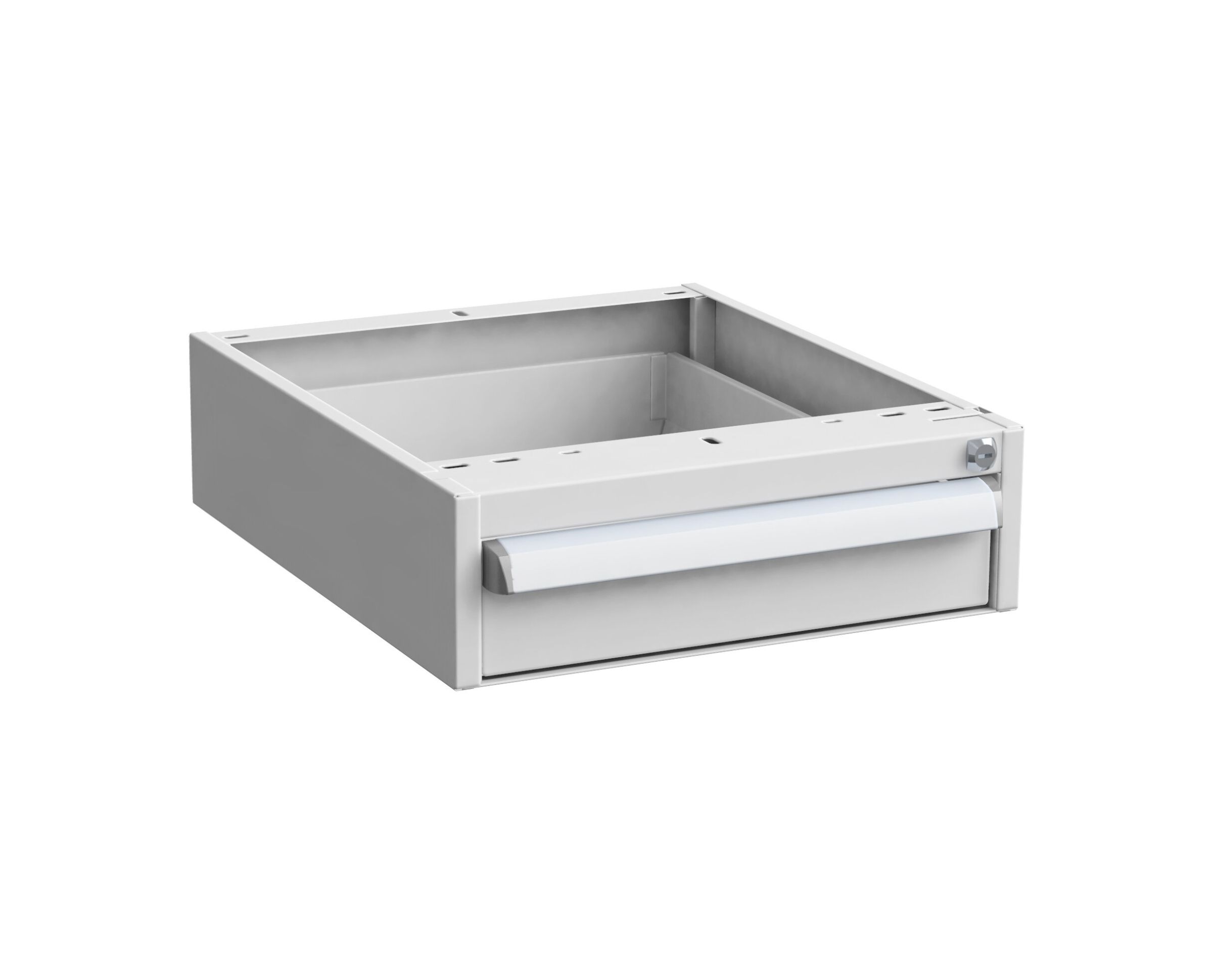 Kodumaised lukustatavad teraskastid. Saab kinnitada tööpinna alla. Kaanega sahtel töötab ühe sahtlina koos ratastega. Kesklukustus, pika tõmbega anodeeritud alumiiniumist. Sahtlite teleskooprööpad avanevad sujuvalt. 100% avanevate sahtlite kandevõime on 60 kg sahtli kohta. Karbid sobivad kasutamiseks ka EPA-alal. Valmistatud halli värvi pulbervärvitud terasest. Värv on hall RAL7035.