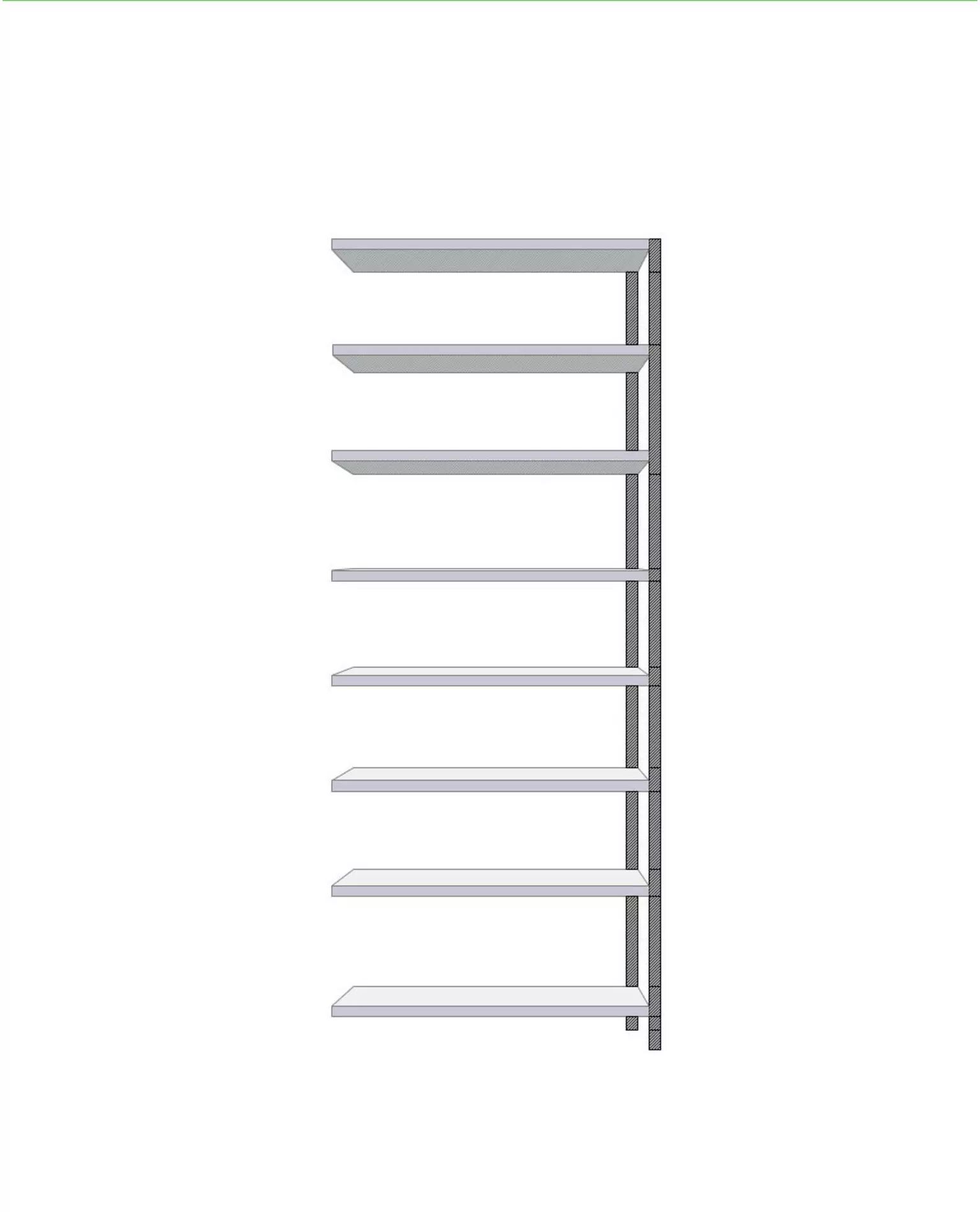 2480 mm kõrgune pikendustükk: 2 sammast, seibid, tugiplaadid, 8 riiulit ja klambrid.