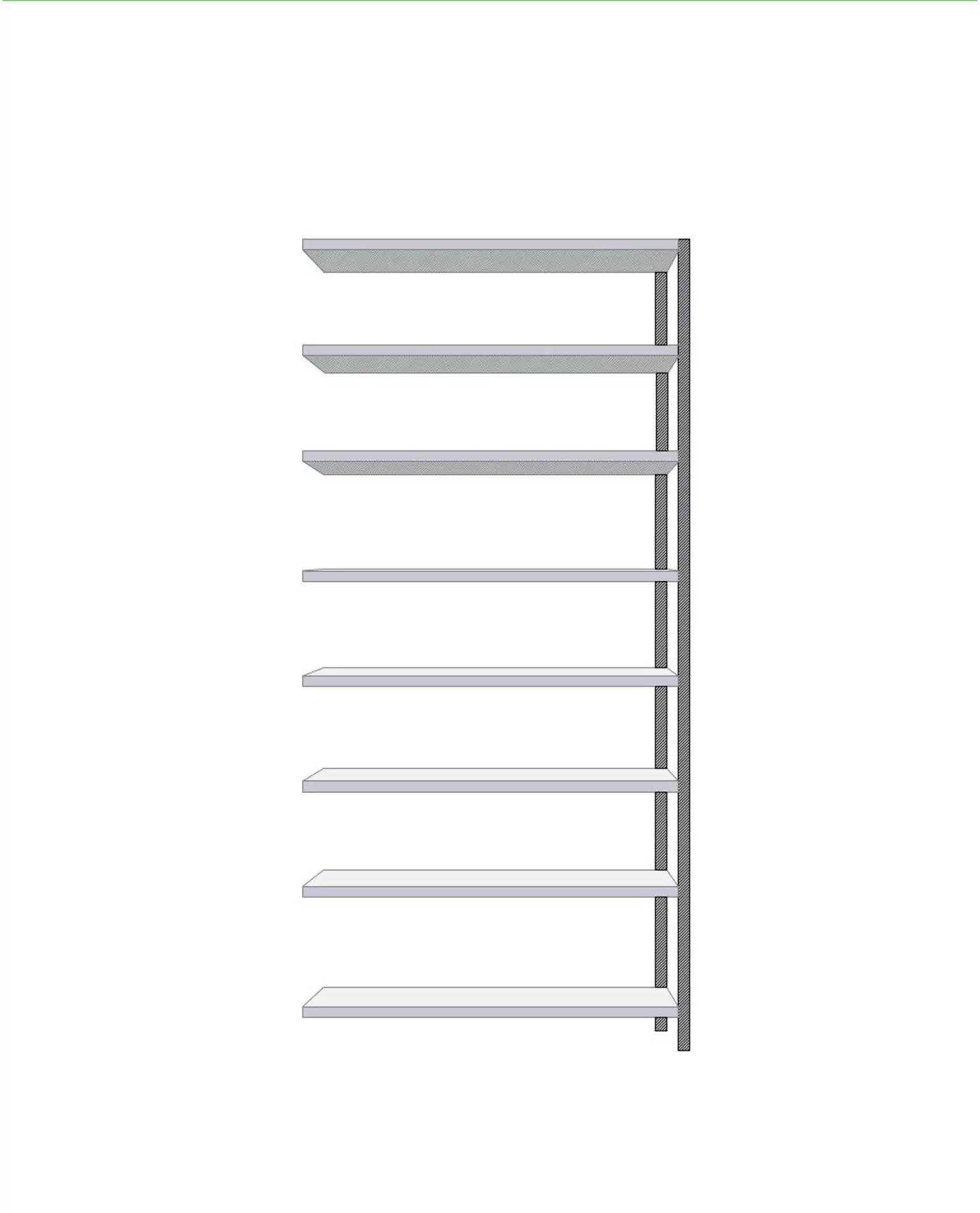 2480 mm kõrgune pikendustükk: 2 sammast, seibid, tugiplaadid, 8 riiulit ja klambrid.