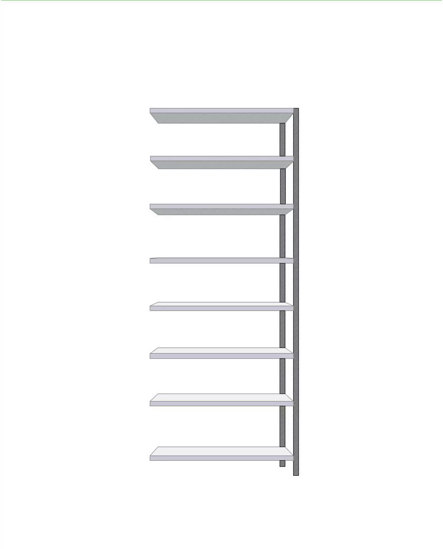 2480 mm kõrgune pikendustükk: 2 sammast, seibid, tugiplaadid, 8 riiulit ja klambrid.
