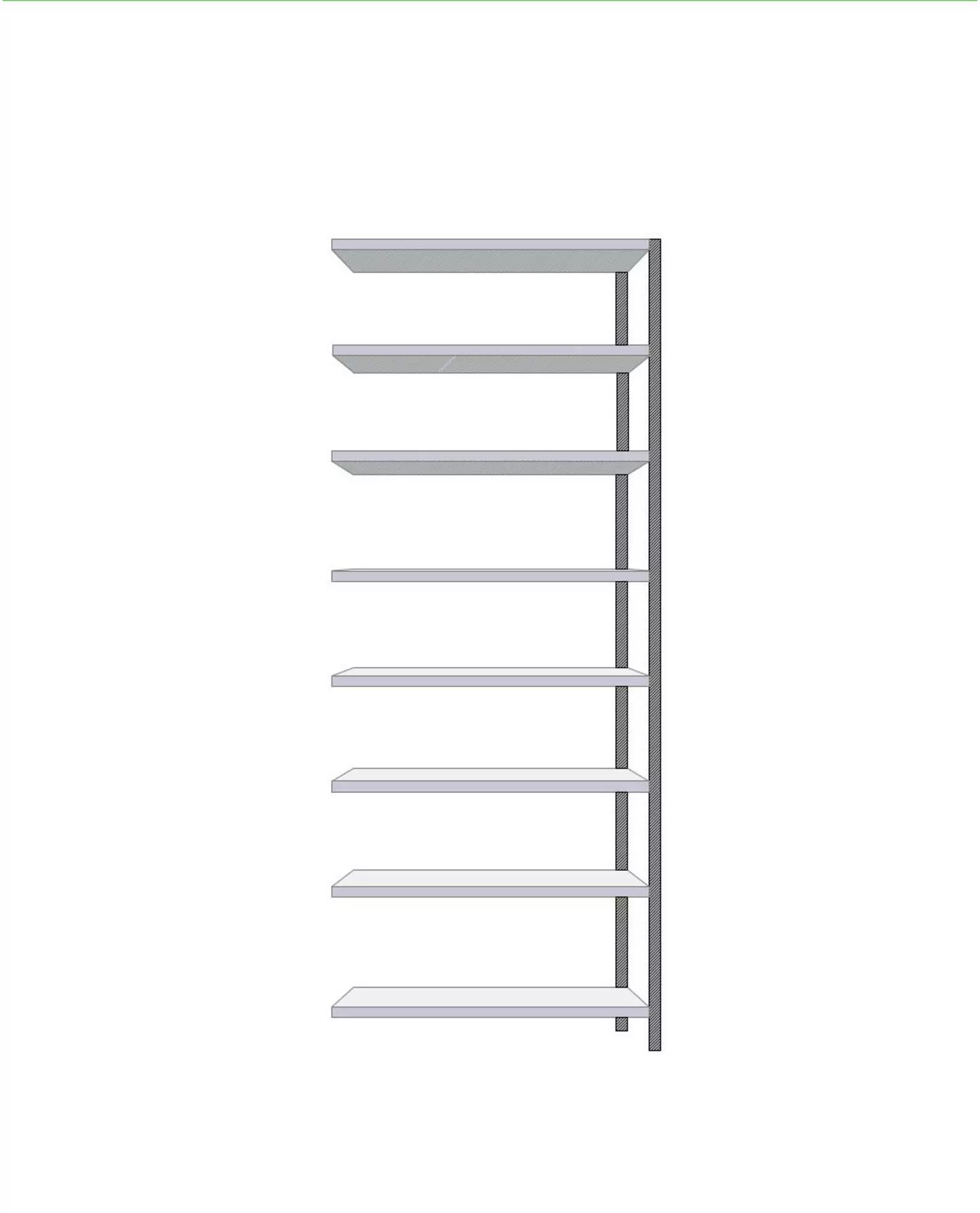 2480 mm kõrgune pikendustükk: 2 sammast, seibid, tugiplaadid, 8 riiulit ja klambrid.