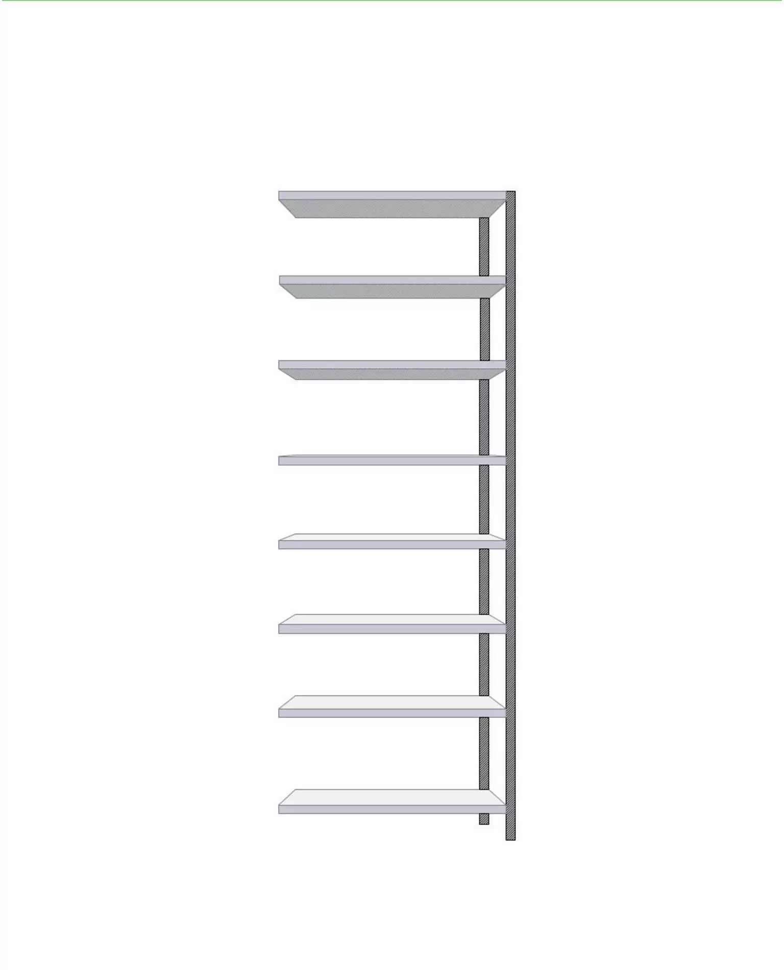 2480 mm kõrgune pikendustükk: 2 sammast, seibid, tugiplaadid, 8 riiulit ja klambrid.