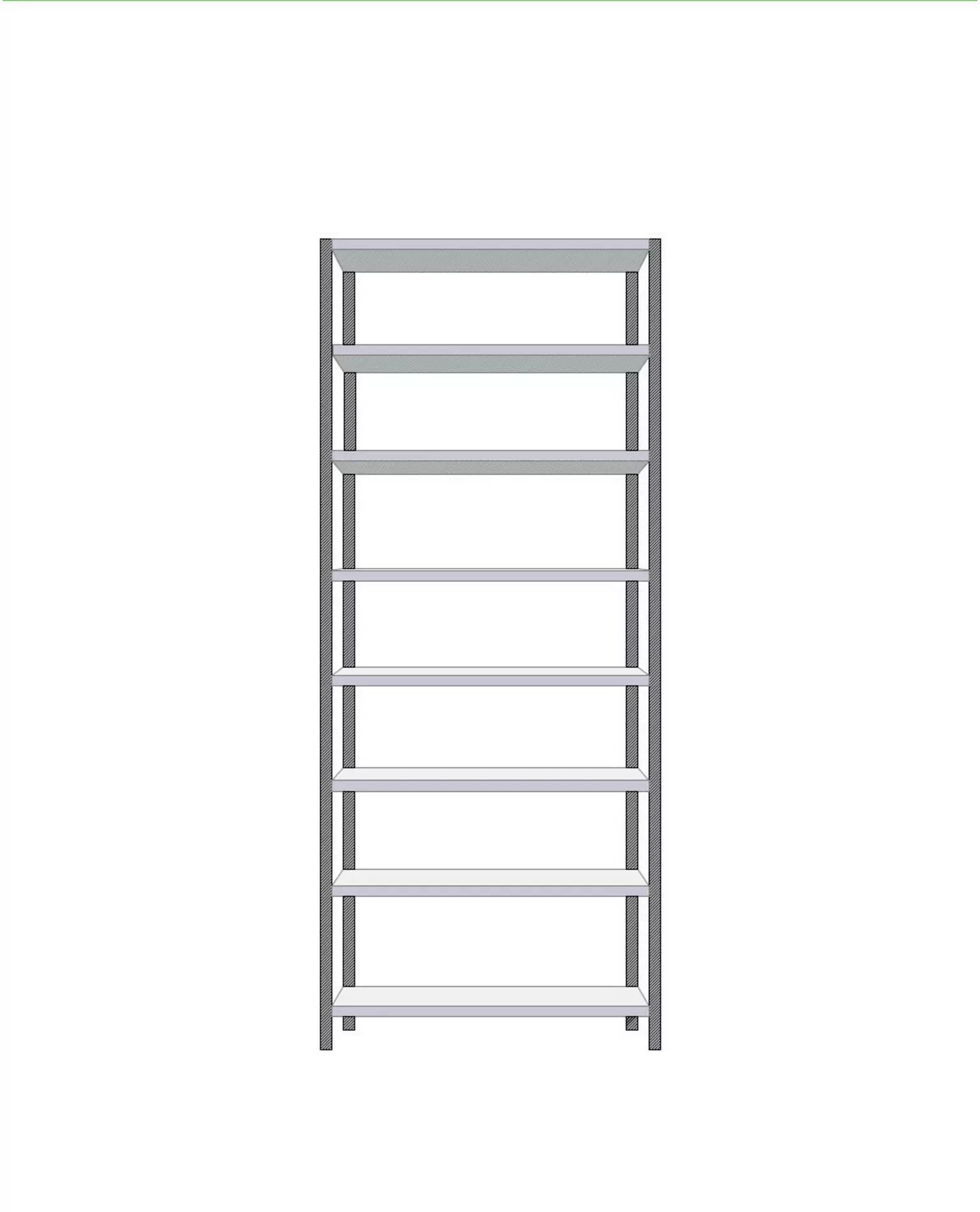 Alusüksus 2480 mm kõrge: 4 sammast, seibid, tugiplaadid, 8 riiulit ja klambrid.