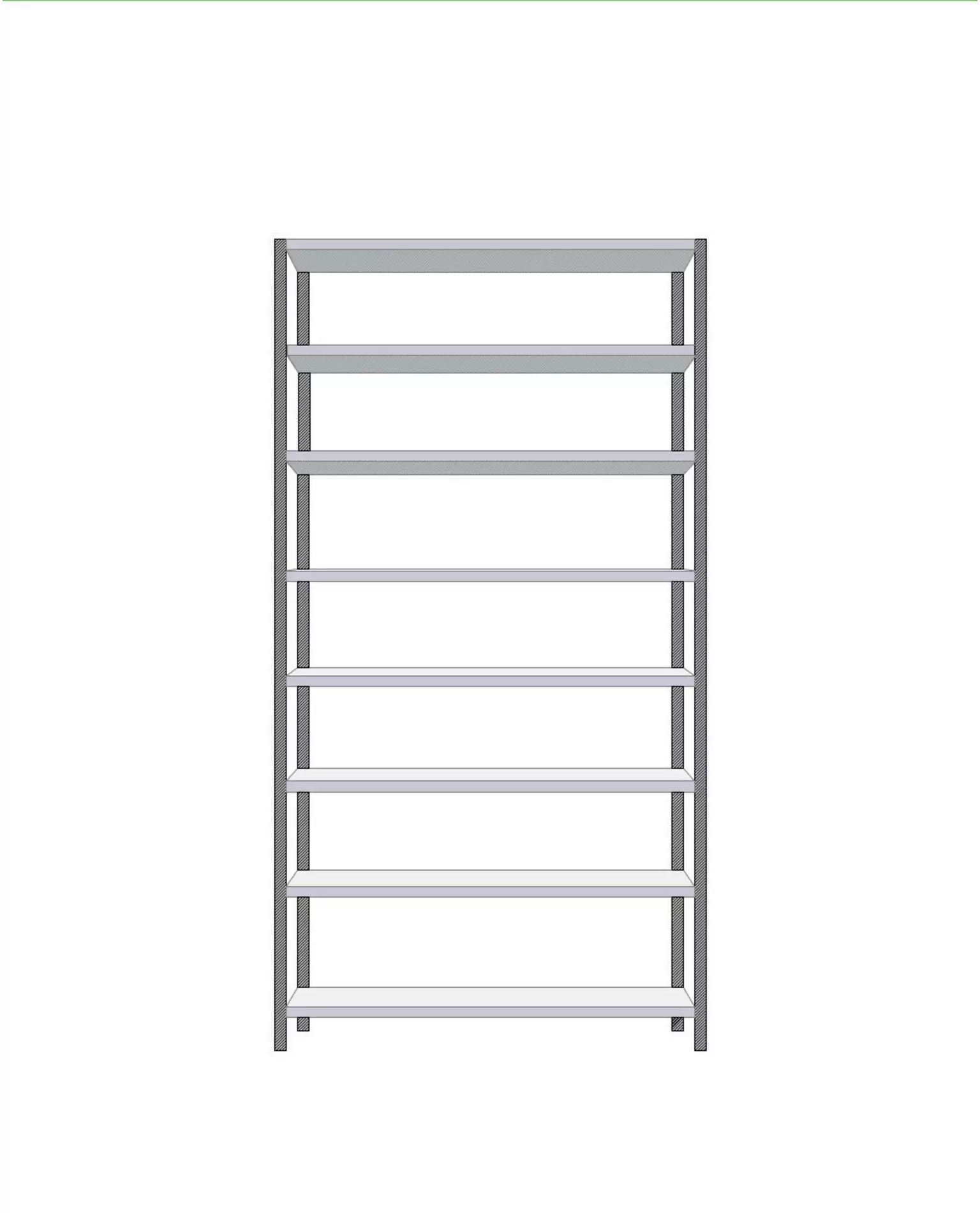 Alusüksus 2480 mm kõrge: 4 sammast, seibid, tugiplaadid, 8 riiulit ja klambrid.