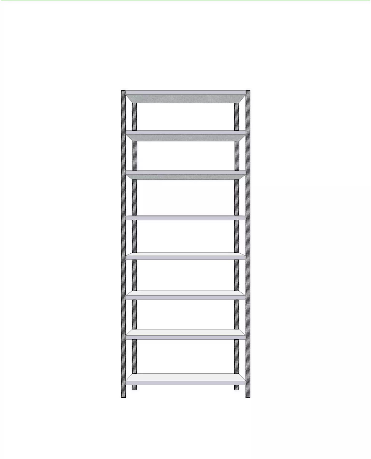 Alusüksus 2480 mm kõrge: 4 sammast, seibid, tugiplaadid, 8 riiulit ja klambrid.