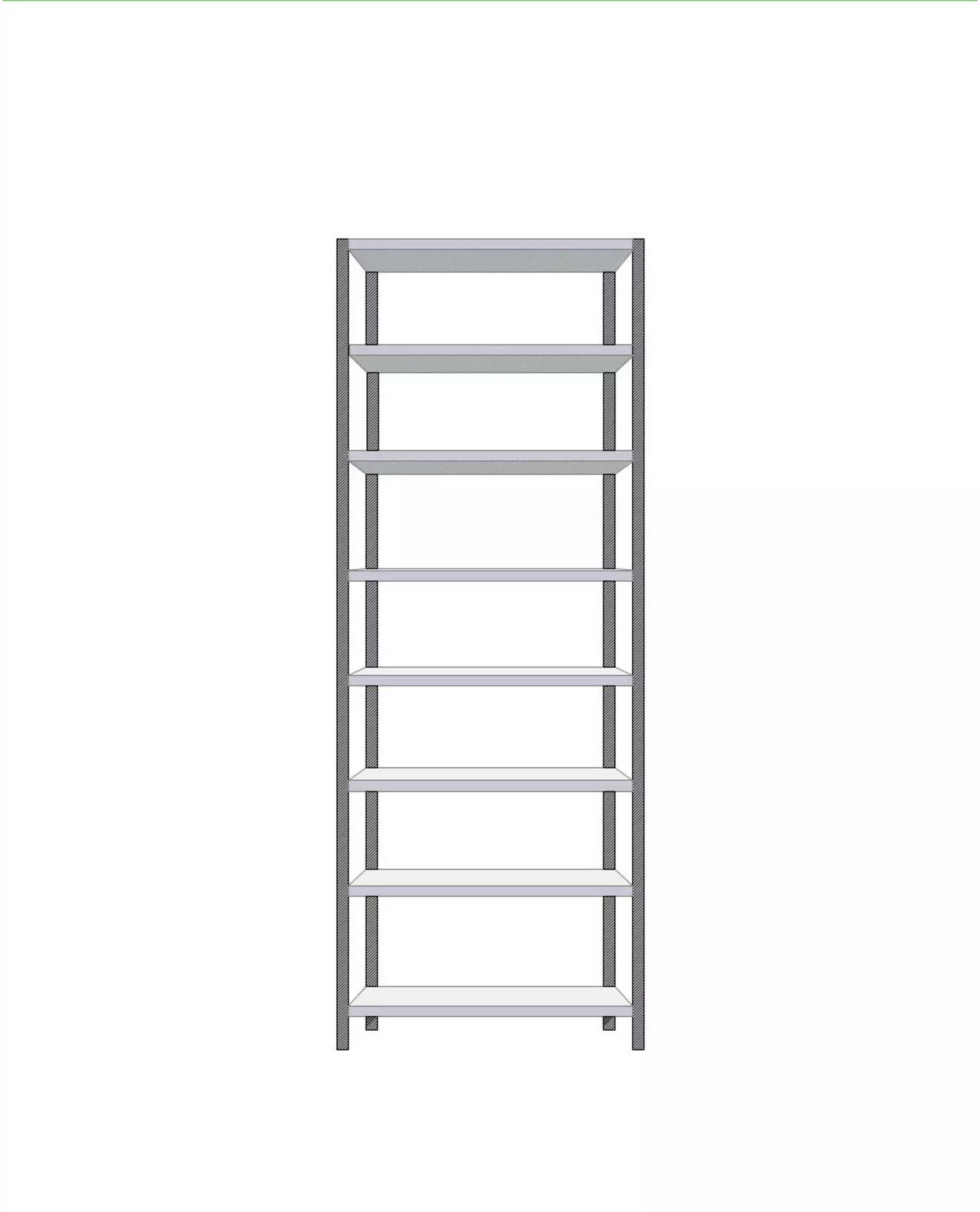 Alusüksus 2480 mm kõrge: 4 sammast, seibid, tugiplaadid, 8 riiulit ja klambrid.