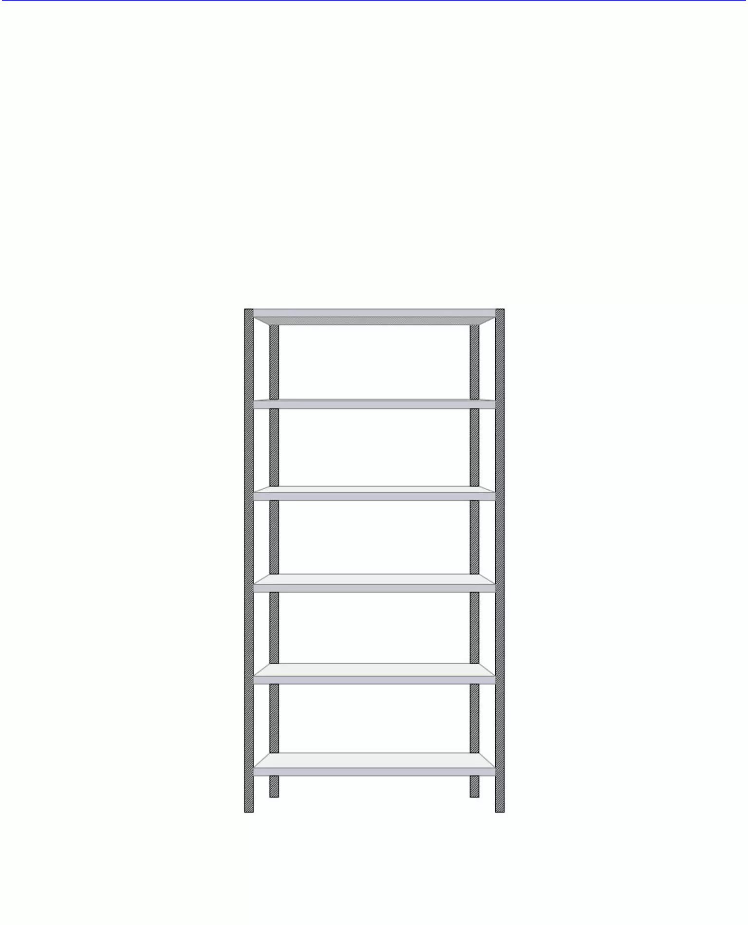 Alus 2020 mm kõrge: 4 sammast, seibid, tugiplaadid, 6 riiulit ja klambrid.
