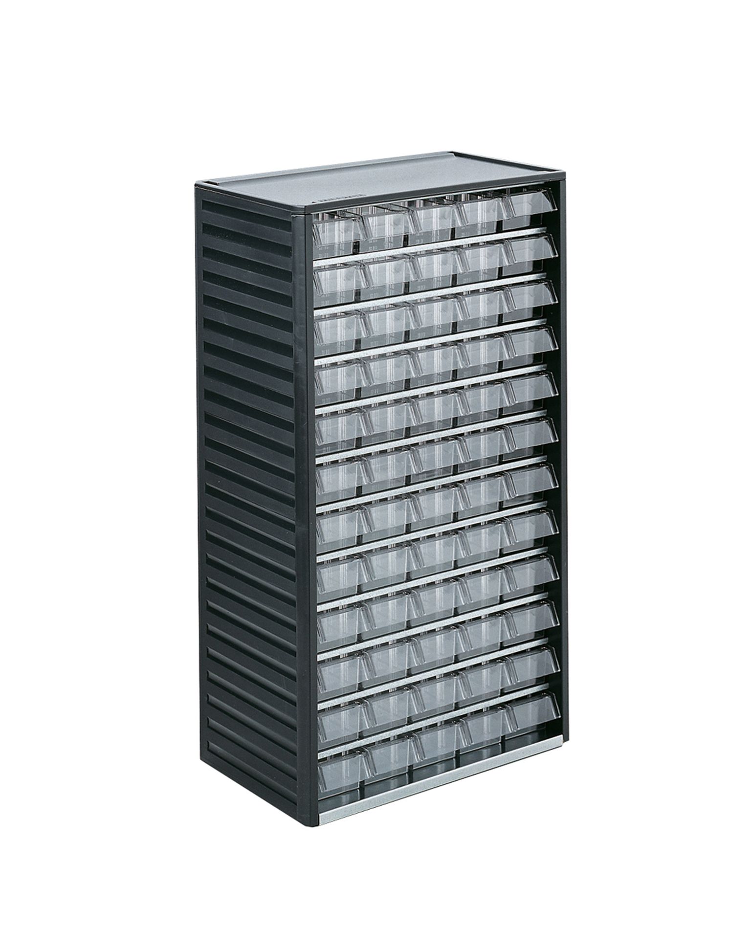 Kvaliteetsed kodumaised väikesed hoiukarbid professionaalseks kasutamiseks. Kastiriiulit saab hoida laual, kruvitud seinale, virnastatud pöörlevatele riiulitele või kastiriiulitele. Raam vormitud polüpropüleenist, riiulid tsingitud terasplekist, sahtlid läbipaistvast polüstüreenist.