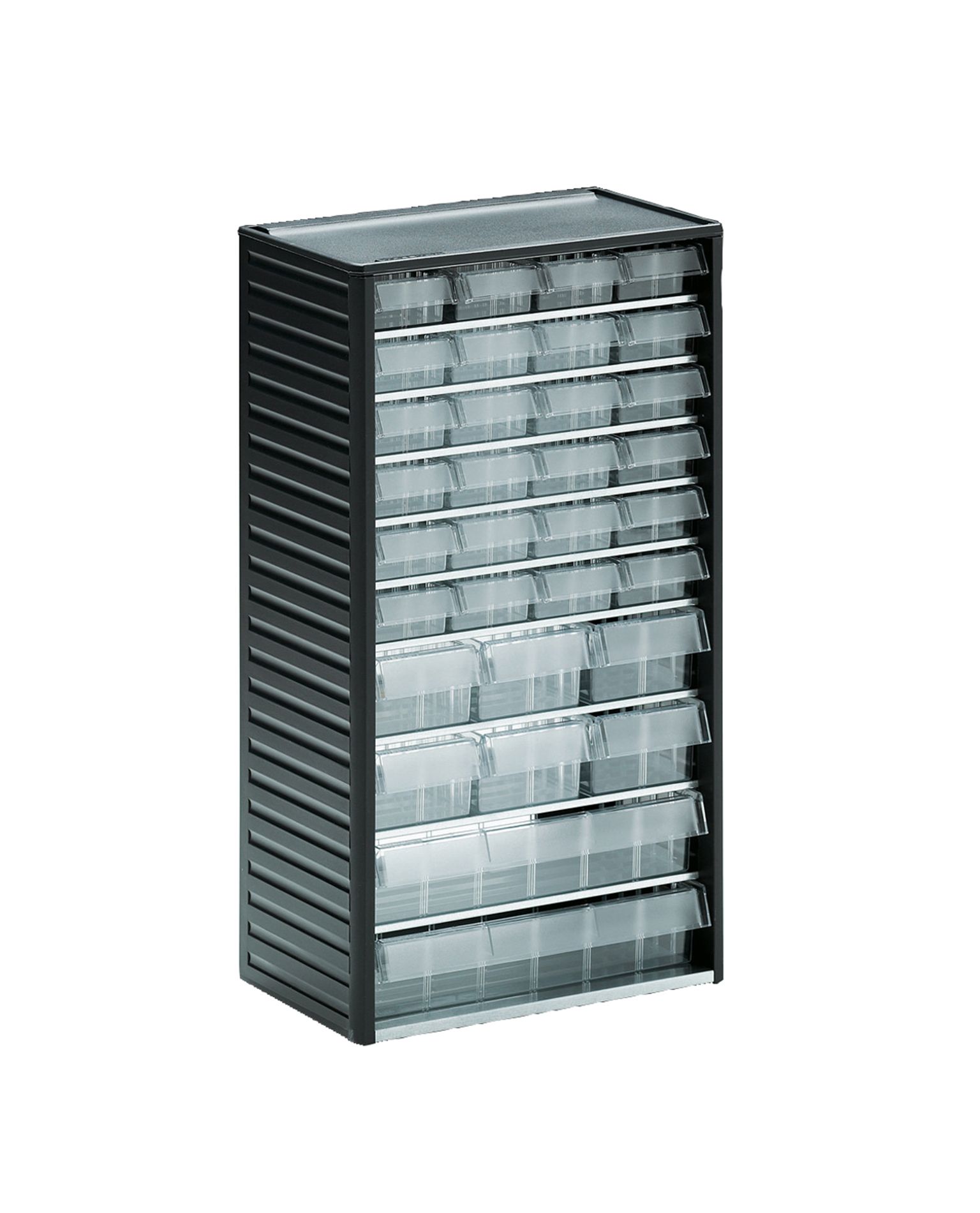 Kvaliteetsed kodumaised väikesed hoiukarbid professionaalseks kasutamiseks. Kastiriiulit saab hoida laual, kruvitud seinale, virnastatud pöörlevatele riiulitele või kastiriiulitele. Raam vormitud polüpropüleenist, riiulid tsingitud terasplekist, sahtlid läbipaistvast polüstüreenist.