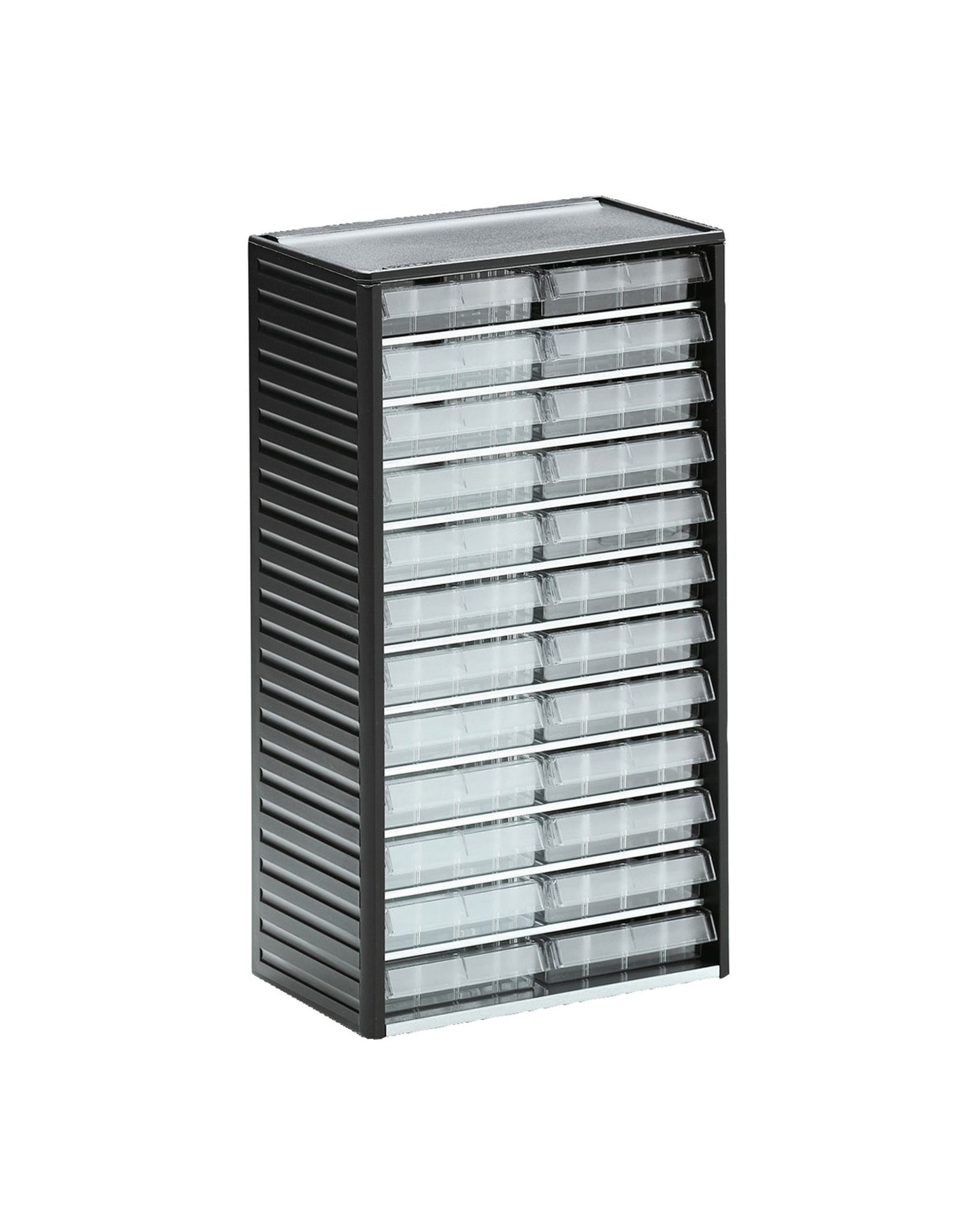 Kvaliteetsed kodumaised väikesed hoiukarbid professionaalseks kasutamiseks. Kastiriiulit saab hoida laual, kruvitud seinale, virnastatud pöörlevatele riiulitele või kastiriiulitele. Raam vormitud polüpropüleenist, riiulid tsingitud terasplekist, sahtlid läbipaistvast polüstüreenist.