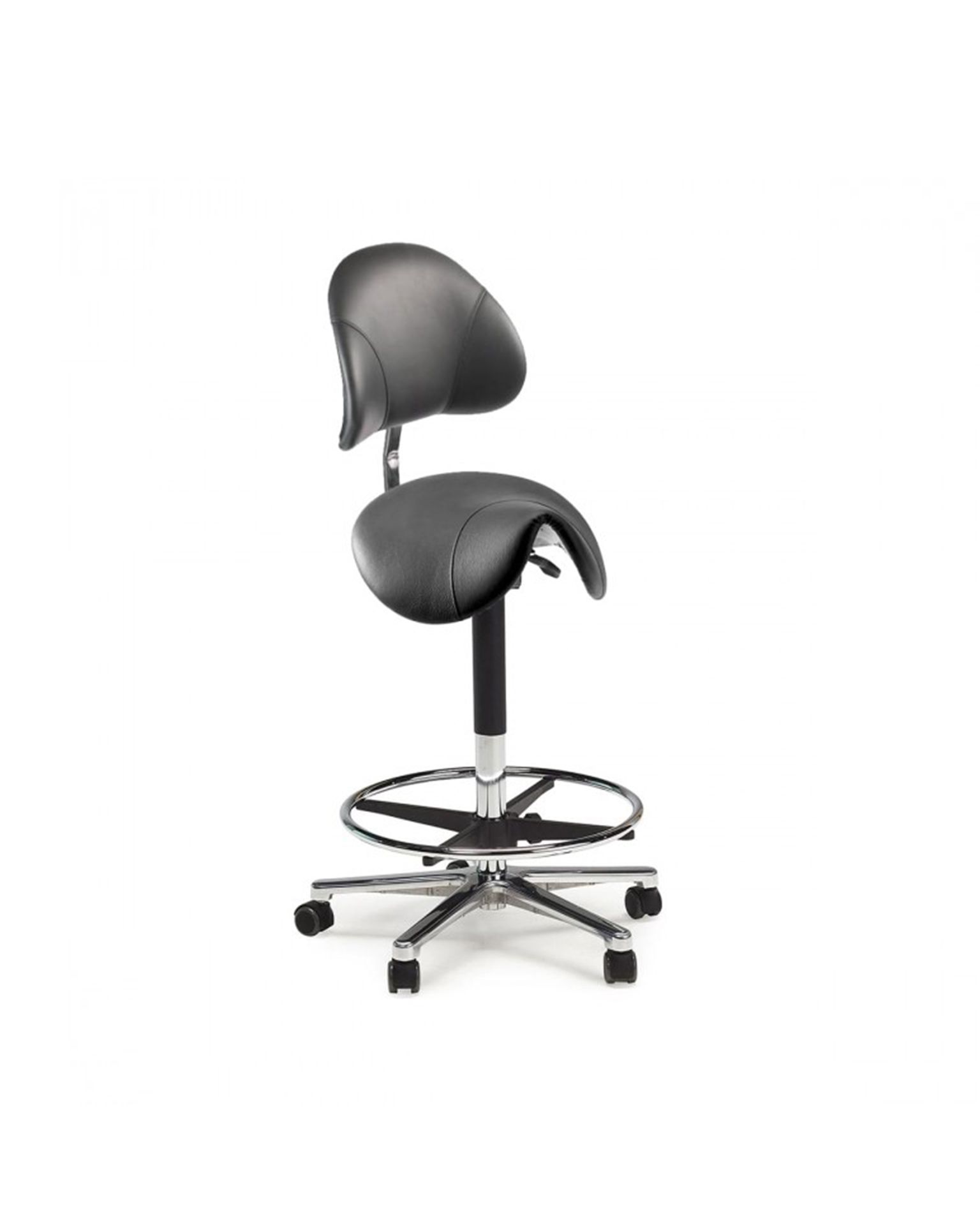Satulatuoli StepSit selkänojalla, korkea, musta keinonahka