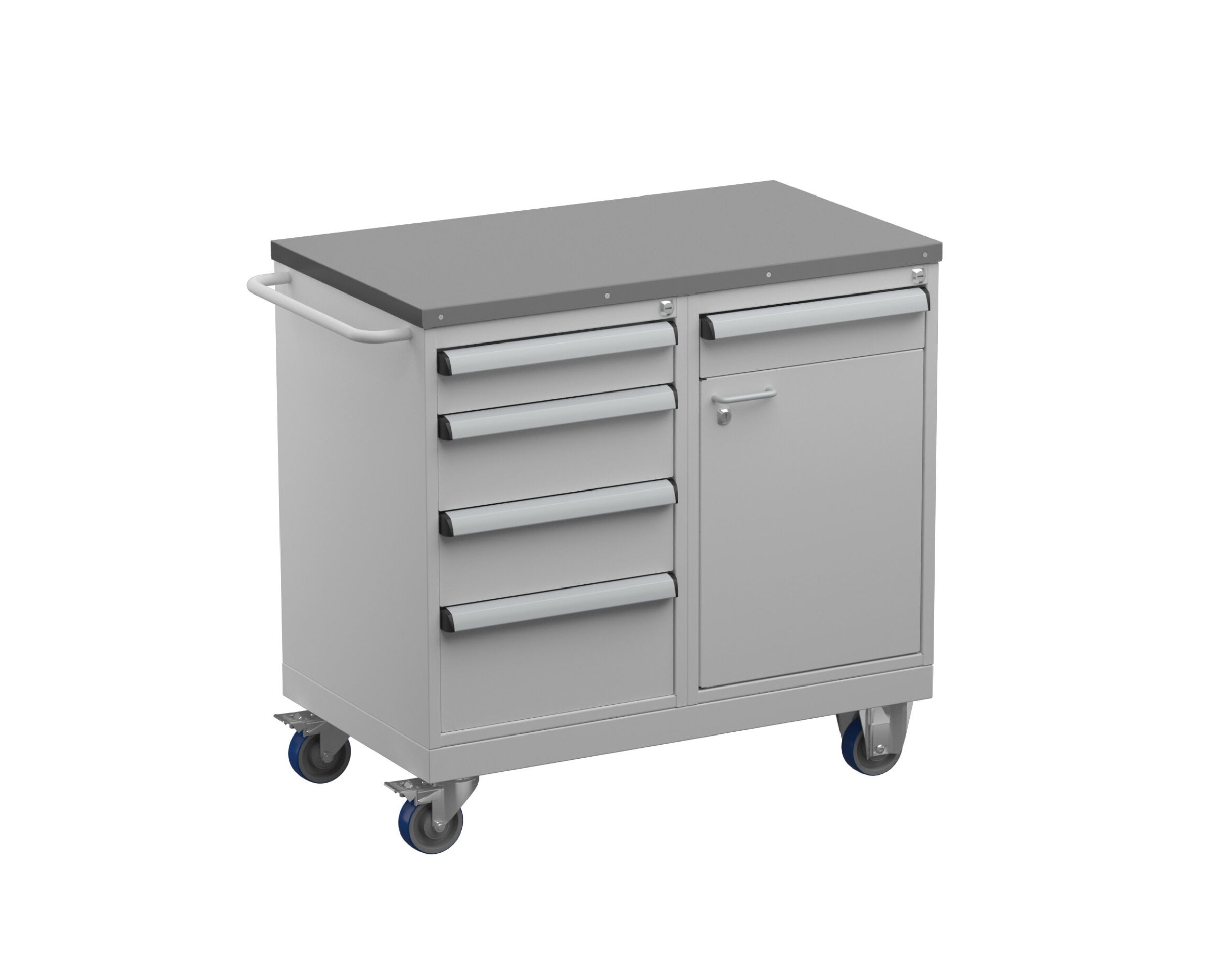 Lihtsalt liigutatav tööriistakäru tugeva terasest alusega. 2x100mm, 2x150mm, 1x200mm kõrge täielikult avatav sahtli ja kapp. Kõik lukustatavad. Kapil on reguleeritava kõrgusega riiul. Kandevõime 300kg.