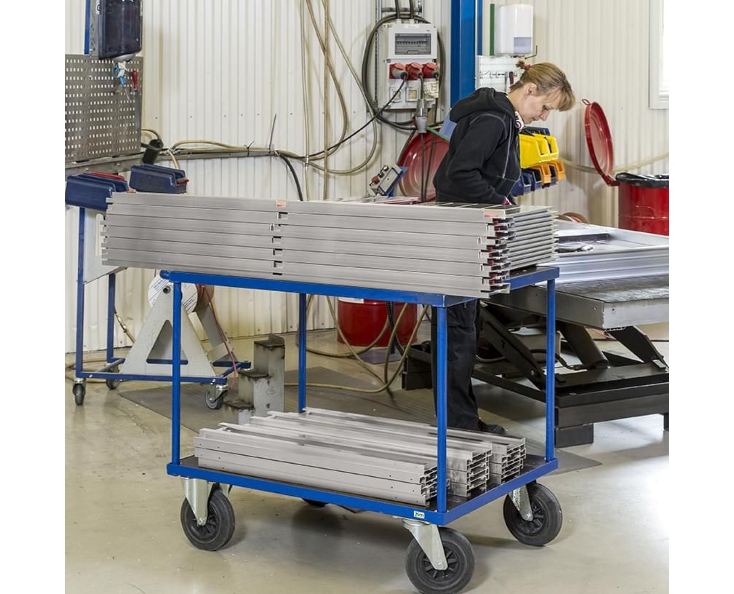Kahekorruseline kaubaaluste tõstuk, mille kandevõime on 500 kg, pakub suurepärase lahenduse logistika- ja laotöötajatele. Raam on valmistatud vastupidavast ja tugevast pulbervärvitud terasest, mis muudab käru eriti vastupidavaks tugevale kulumisele. Mitmeotstarbeline käru, mille ühes otsas on tõukepääs.