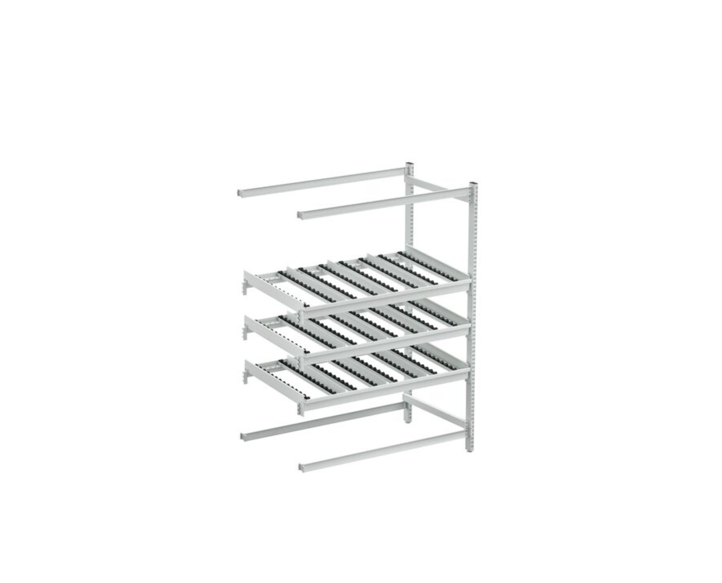 Läbivoolava riiuli külgriba abil saate hõlpsasti suurendada oma hoiuruumi lõpmatult. Riiul sisaldab 3 rullriiulit, mis on reguleeritavad ilma tööriistadeta.